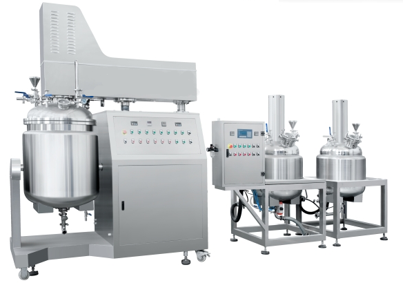 The homogenizer uses high pressure and high speed shearing of oil, water, emulsifier and other liquids to form uniform oil-water phase or water-oil phase small particles. Generally used for ice cream production, flavor production, chemical industry and other liquids with oil and water , Emulsifier and other components must be used equipment. The principle of the emulsifier is that the material is sheared, compressed, and folded by the mixing blade to mix and flow down to the lower homogenizer. The material passes through the high-speed rotating homogenizer rotor and stator to produce strong shearing. A series of processes such as, impact and turbulence are quickly broken into particles. Because the emulsification pot is in a vacuum state, the material will not generate bubbles during the mixing process.